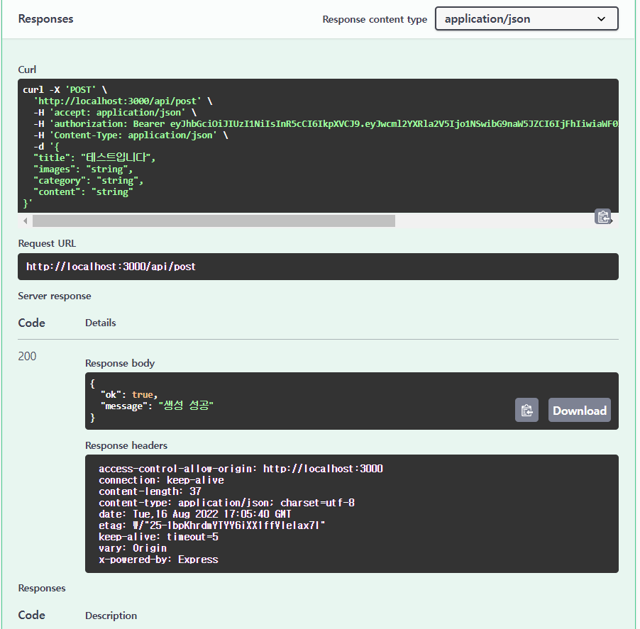 이 부분은 처음 swagger.js에서 옵션으로 설정해주어야 가능하다.