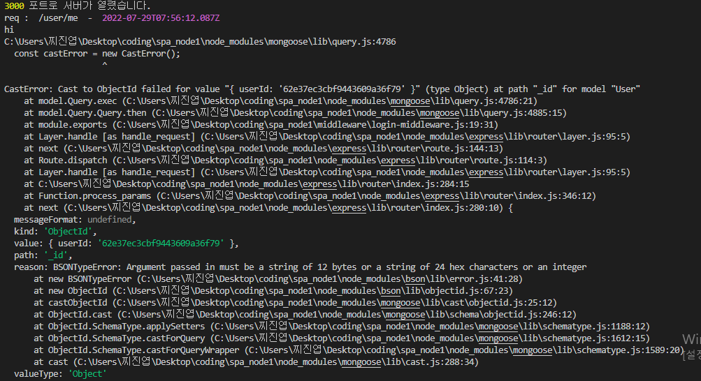 [오류 해결] CastError: Cast to ObjectId failed for value "값" at path "_id" for model "모델명"