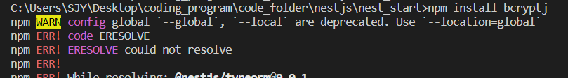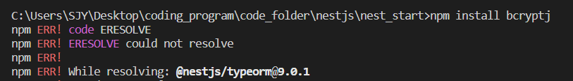 이번엔 bcriptjs를 설치해서 사용해야 하는데 처음 보는 에러와 마주했다.